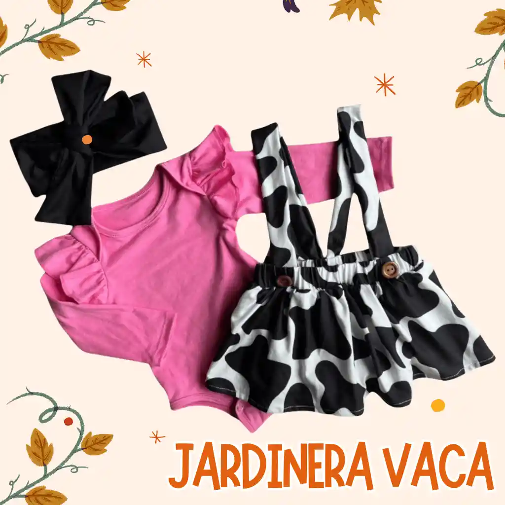 Incluye mameluco manga larga, jardinera y accesorio de cabeza