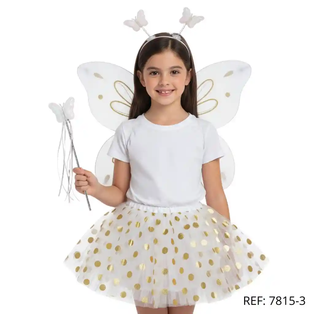 Disfraz infantil de mariposa blanca con alas, tutú y varita. Ideal para niñas 3 a 7 años. Pregunta disponibilidad, colores o modelos pueden variar.