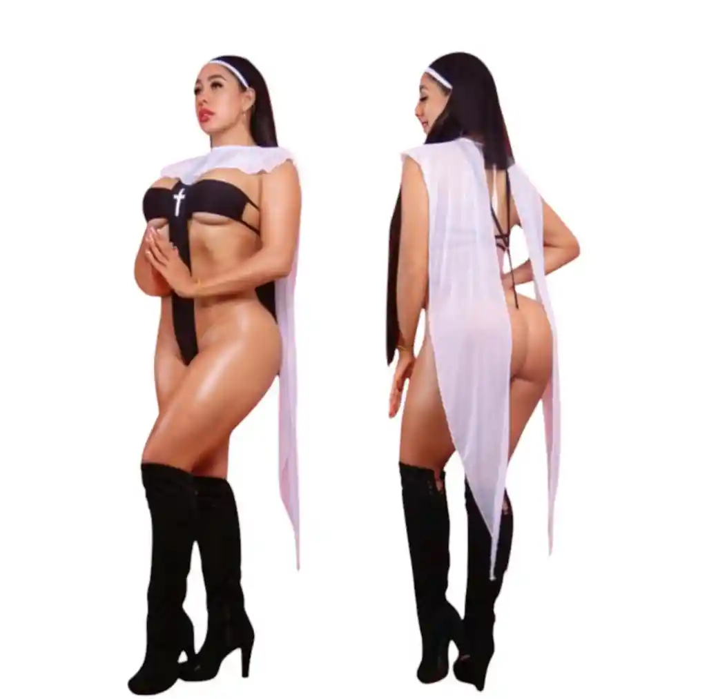 La vida está llena de placeres que definitivamente debemos experimentar, una mirada pícara, una dulce fragancia y un disfraz de Monja para mujer es todo lo que necesitas para un día diferente. nuestro disfraz de monja viene con todos los accesorios que se ven el foto