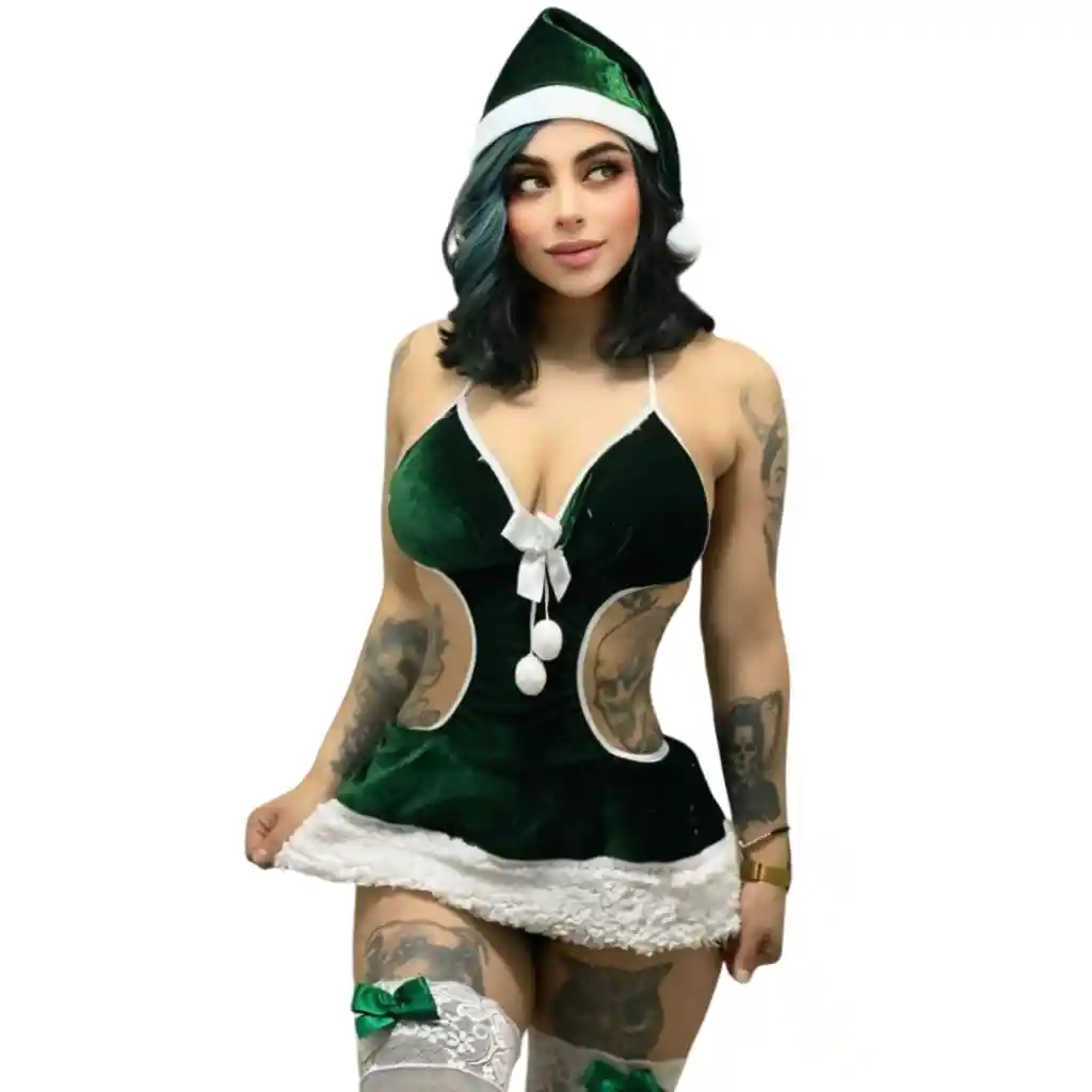 Listo para Navidad: este set tentador; cálido y emocionante es imprescindible para esta temporada navidad. CARACTERÍSTICAS: Material: 93%Poliester 7%Elastano Talla: Unica Color: Verde Incluye: Vestido, Gorro, Medias