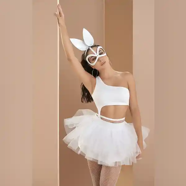 Encanta Con la Sensualidad de un Buen Baile. Traje Perfecto Para Salir a Disfrutar Las Fechas de Halloween o Convertirlo en un Disfraz Sensual. Características: Material: Poliester 93% - Spandex 7% Talla: Única Color: Blanco Incluye: Antifaz Con Orejas Body Falda y Medias Cuidados: Lavar a Mano o en el Proceso de Prendas Delicadas. Confidencialidad: Tus Pedidos se Envían en Una Caja o Sobre Totalmente Sellado Opaco Sin Ningún Tipo de Marcas Externas. Para Nosotros es Muy Importante tu Privacidad.