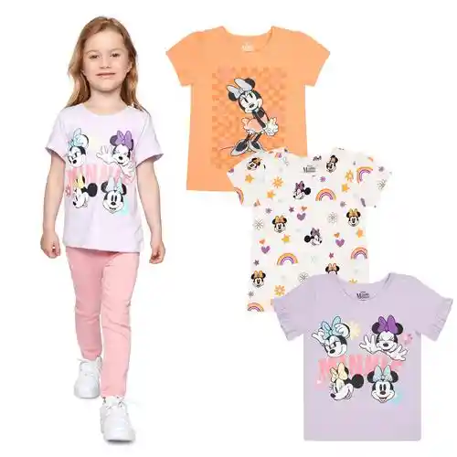 Estas Camisetas Serán Las Favoritas de Las Niñas de la Familia Con Unos Divertidos Diseños de Sus Personajes Favoritos de Disney Como Minnie Frozen y Princesas en Colores Pastel. Cuentan Con Manga Corta o Diagonal Cuello Redondo de Doble Costura. Pueden Usarse en Cualquier Estación Del Año.
