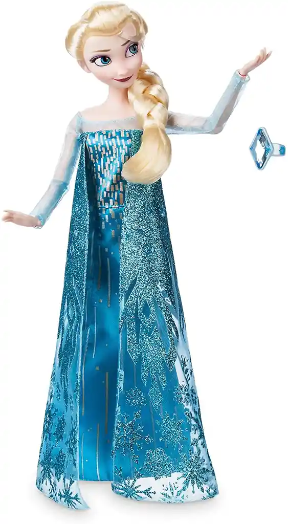 + Copos de nieve helados y filigrana helada revolotean desde la capa glamorosa que usa Elsa en esta muñeca clásica. + Potencia su imaginación con este favorito de Frozen. Incluye un anillo con joyas para que lo uses y lo compartas.Magia en los detalles:+ El disfraz de lujo presenta un vestido con estampado de satén cubierto por una capa de malla transparente con glaseado de copo de nieve brillante.+ Mangas de malla brillante.+ Detalle de purpurina '' holográfica ''+ Combínalo con nuestra muñeca clásica Anna con anillo. que se vende por separado.+ Inspirado en Frozen de Disney+ Parte de la colección de muñecas clásicas de Disney
