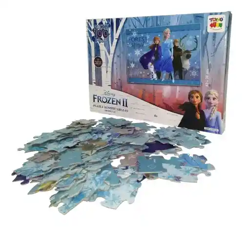 Puzzle Rompecabezas de Frozen 2 las nueva película de Disney con 100 piezas de superficie brillante con Glitter, recomendado para mayores de 4 años.