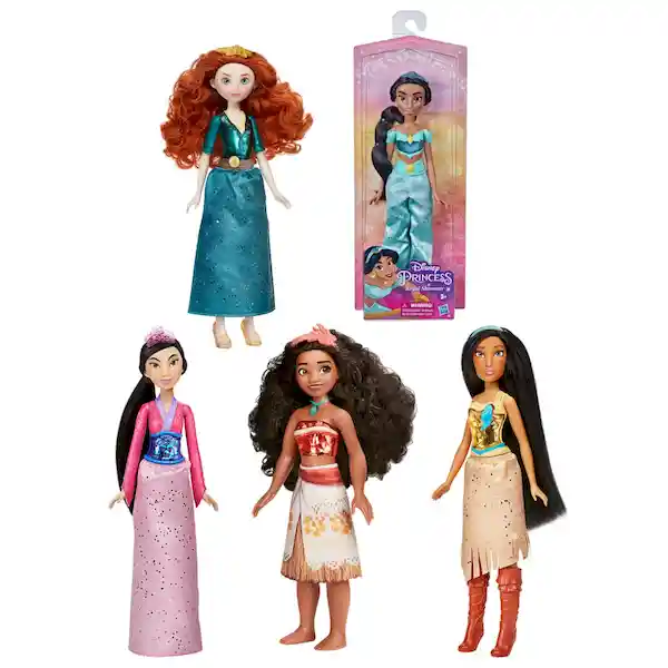 ¡Brilla Brilla y Brilla Mucho Más! Las Hermosas Princesas de Disney Que Tanto Queremos no Solo Nos Impresionan Con su Valentía Amabilidad e Inteligencia Sino Que Sus Atuendos Serán el Centro de Atención en el Próximo Baila Gracias a Sus Despampanantes y Deslumbrantes Vestidos Tiaras y Zapatos. Cada Una de Ella va Vestida Con Sus Colores Distintivos Que Brillan Desde un Hermoso Corsé Hasta Sus Zapatos de Tacón. Vive Junto a Ellas un Verdadero Cuento de Hadas Una y Otra Vez Pasando Interminables Horas de Mucha Diversión y Entretención Imaginando Las Historias Más Hermosas Donde Los Sueños sí se Hacen Realidad. Cada Una se Vende Por Separado.