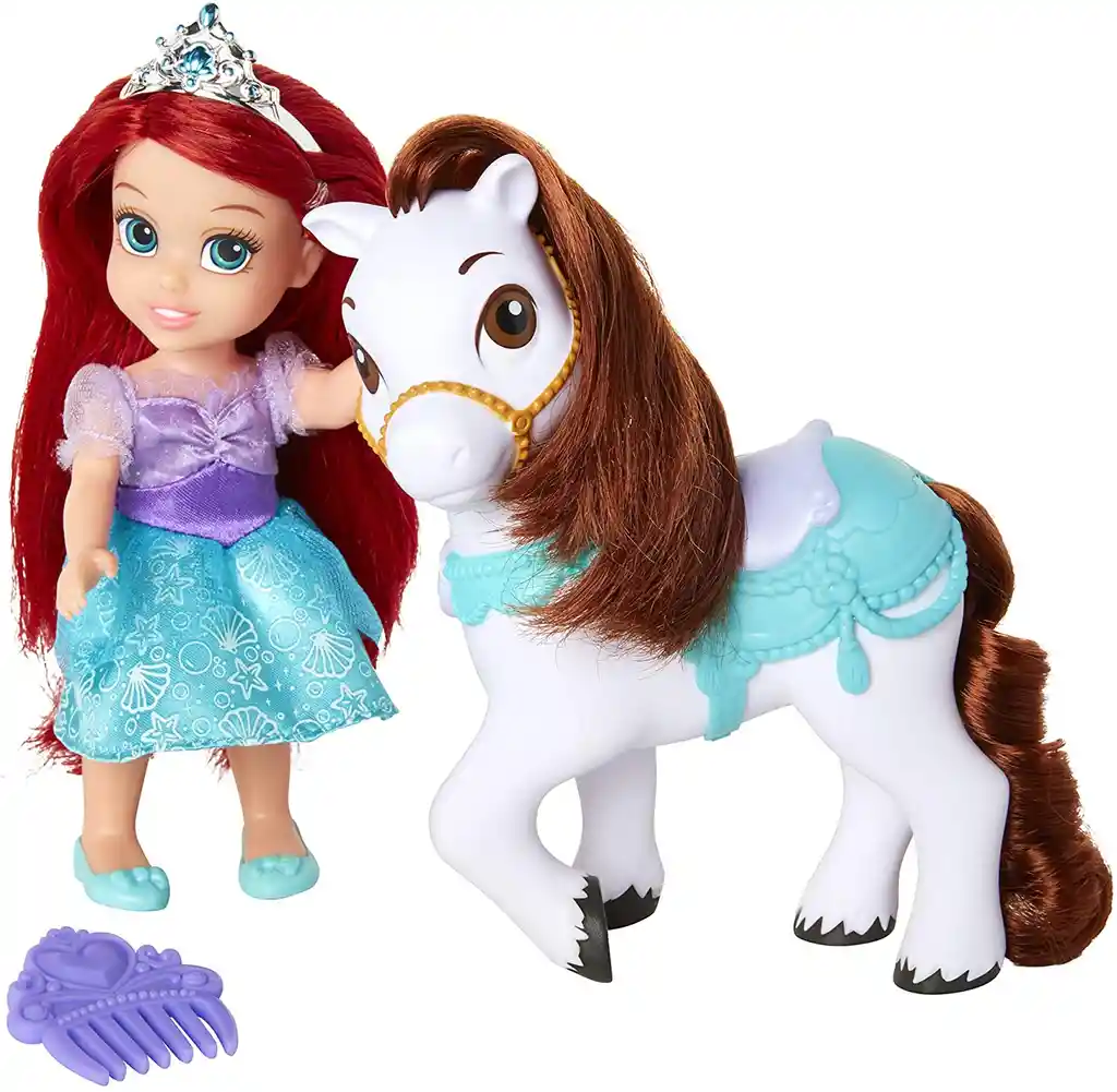 La princesa Ariel de Disney está lista para la aventura con su poni favoritoAyuda a Ariel a conseguir su poni listo para el desfile realIncluye un peine para tu princesa y ponySillín de caballo extraíbleContenido: 1 muñeca pequeña de 6 pulgadas. 1 tiara de muñeca. 1 par de zapatos de muñeca. 1 pony. 1 sillín y 1 peineA partir de 3 años