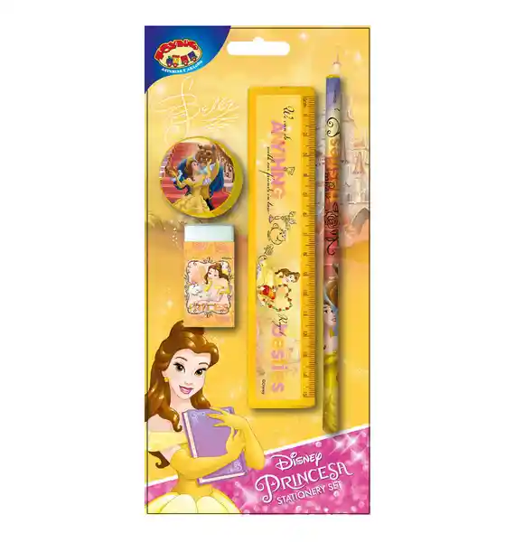 Set Contiene 4 Unidades: Lápiz 1 Und + Regla 1 Und + Borrador 1 Und + Tajalápiz 1 Und. El Set de Escritura Con Diseño de la Princesa Bella es Perfecto Para Que tu Hija Tome Sus Mejores Apuntes, ya Que Contiene Todo lo Que Necesita. ¡Anímate y Adquiérelo Ahora! Recomendado Para Niñas de 3 Años en Adelante.