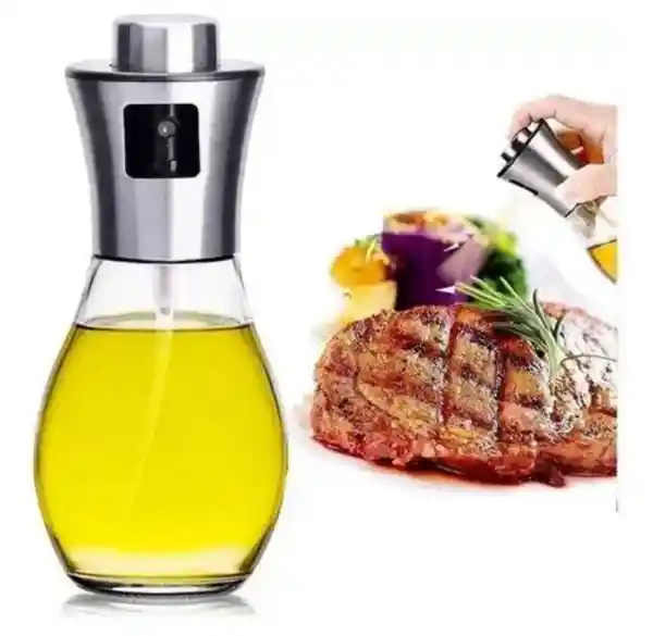 La botella de spray de aceite atomizado tipo Push es un buen control de aceite y una vida saludable para cocinar. Tiene un diseño de tapa de botella de sombrero de copa, y los lados se encogen hacia abajo para adaptarse a la forma de la mano y hacer que el agarre sea más cómodo. Características: - Material: ABS, vidrio - Capacidad: 150ML - Libre de BPA, 100% segura para alimentos. Contenido del paquete: 1 Botella Dispensador Aceite Spray