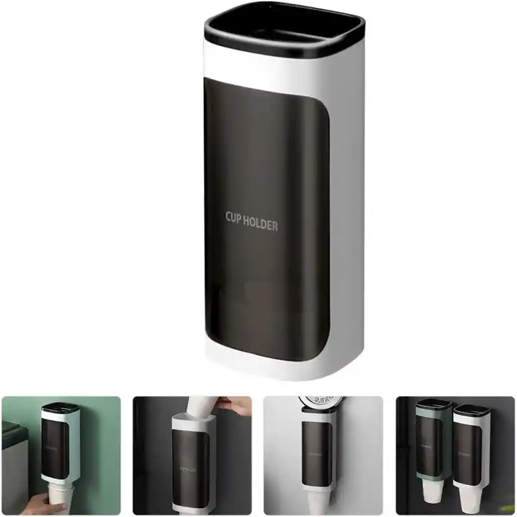 Este tipo de dispensador de vasos está diseñado con una tapa que podría proteger sus vasos limpios y ordenados, evitando que entre polvo y otras suciedades.La parte posterior está diseñada con pegamento adhesivo, por lo que puede instalar el portavasos en la pared fácilmente, ahorrando tiempo y fuerza para usted.Está diseñado con una ventana visible que es conveniente para que sepa el tiempo que necesita para agregar tazas, haciendo su vida más conveniente y fácil. Especificaciones: Material: ABS + PS Tamaño: 95 x 95 x 240 mm (9.5X9.5X24 cm) Grado del producto: producto calificado. Color: Blanco con café Tu compra incluye: 1 Dispensador de vasos