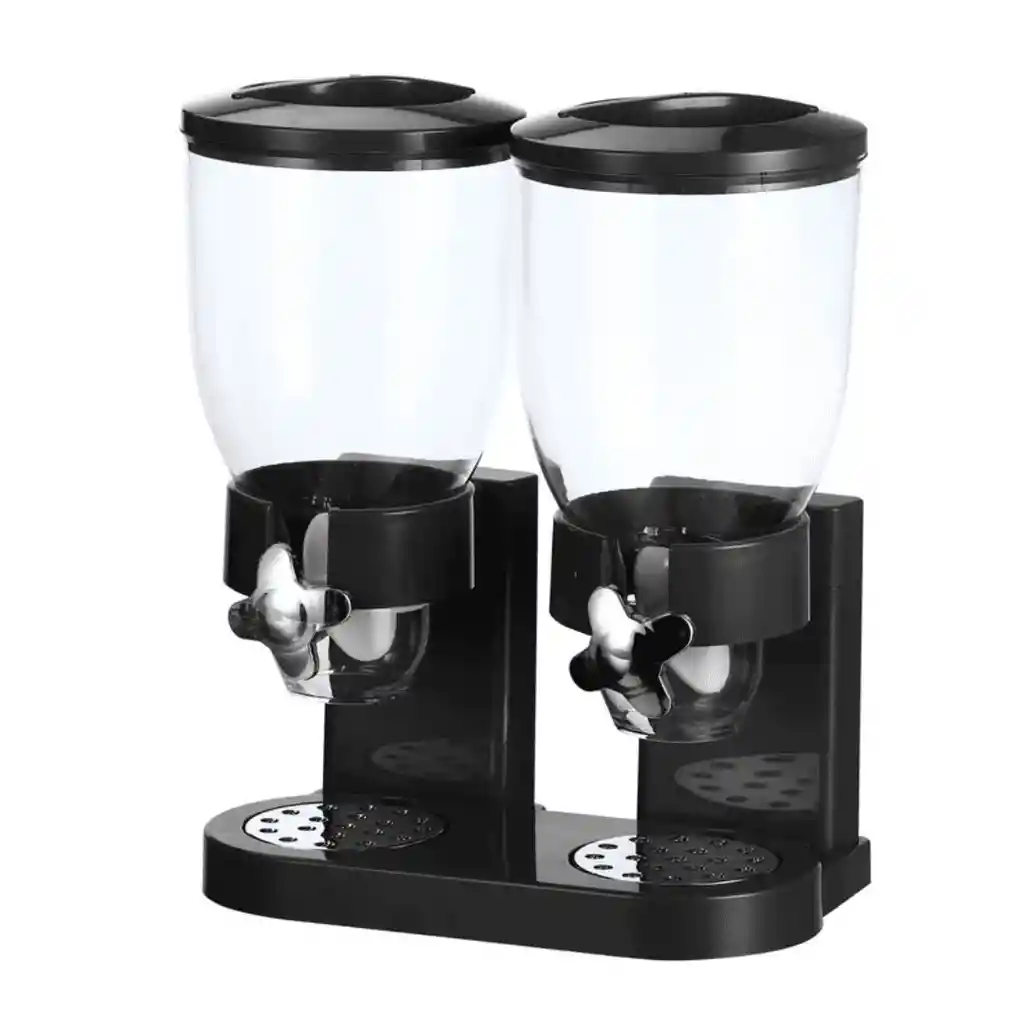 Solución práctica para hogares y negocios Este dispensador doble no solo es ideal para el hogar, también funciona perfectamente en cocinas de restaurante casero o autoservicio. Permite almacenar, dosificar y servir alimentos secos de forma higiénica y ordenada. Su estructura resistente está diseñada para uso frecuente. Facilita el servicio rápido y mantiene la encimera despejada. Una herramienta funcional que mejora la experiencia diaria. Pensado para quienes buscan orden y eficiencia real. Especificaciones Dispensador doble de cereal y alimentos secos, fabricado en plástico de alta calidad y grado alimenticio con tapas ABS selladas, color transparente con estructura negra, tipo dispensador de encimera multiuso, dimensiones del producto 42 cm de alto x 32.8 cm de ancho x 20 cm de largo, dimensiones del producto empacado 45 cm de alto x 35 cm de ancho x 23 cm de largo, capacidad total 4 litros, peso aproximado 2.6 kg. Incluye 1 dispensador doble de alimentos secos con sistema de dosificación por giro. Garantía 30 días por defectos de fabricación. Política de Retracto 5 días hábiles desde la recepción del producto, siempre que esté completo y sin uso. Nota Importante Si el producto llega golpeado o con piezas faltantes, repórtalo en las primeras 24 horas a la transportadora. Para aplicar la garantía, envía fotos y videos donde se evidencie el defecto.