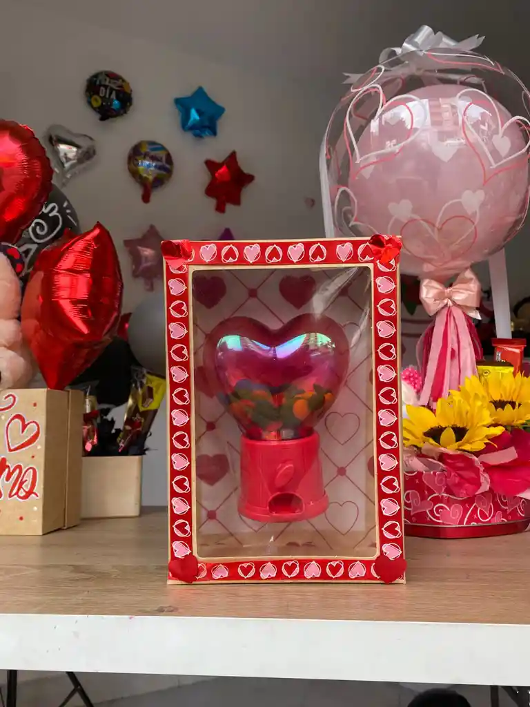 Incluye: Caja ventana, dispensador de dulces funcional, decoración y mensaje personalizado