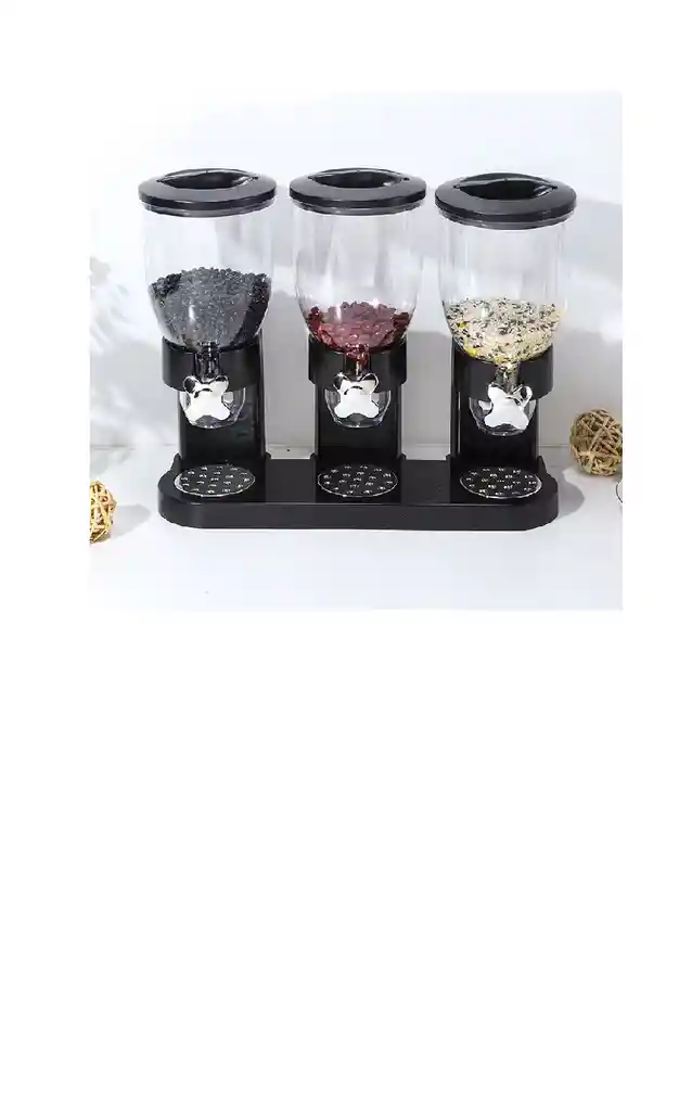 Dispensador de granos triple Ideal para cereales, granos, frutos secos y dulces, este elegante dispensador añade funcionalidad y estilo a cualquier espacio. 2L, medida de 34x40cm colores: negro y blanco