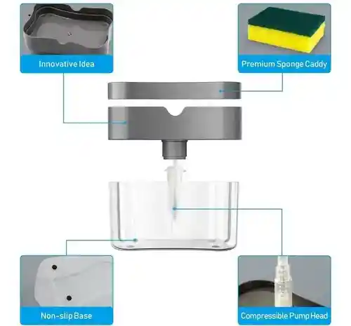 OBSEQUIO 2 ESPONJAS Dispensador de jabón para lavar platos kai colgado, dispensador de esponja para dispensador de jabón 2 en 1, dispensador de jabón para platos, dispensador de jabón para encimera, dispensador de bomba de jabón, carrito de esponja, 13 onzas