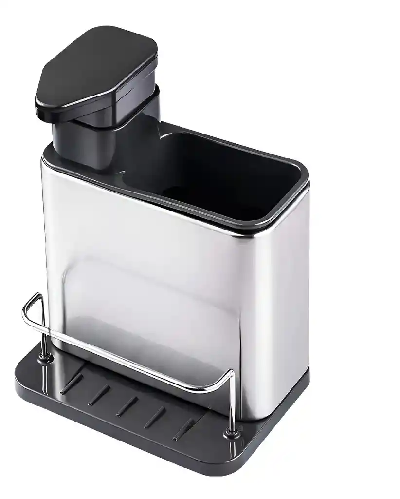 Somos Zebbris shop Trabajamos para brindarte la mejor experiencia en tus compras Descripción Diseño 3 en 1: este fregadero de cocina dispensador de jabón con diseño compacto. Es fácil almacenar esponjas, fregadores y cepillos en un solo lugar para ahorrar espacio. Con un dispensador de bomba de jabón incorporado: la apertura de este organizador para fregadero de cocina es lo suficientemente grande como para rellenar la botella. El cabezal de bomba grande es cómodo de usar. Base antideslizante con orificio de drenaje: el fregadero de cocina con soporte para jabón con patas antideslizantes es resistente para evitar que tus herramientas de limpieza se vuelquen. Agujero de drenaje en el lateral de la base para mantener tu cepillo seco. Material: este dispensador de jabón de cocina está hecho de acero inoxidable de primera calidad, seguro, resistente, a prueba de huellas dactilares y fácil limpieza. Estilo moderno: dispensador de líquido para platos simple y elegante que se adapta a cualquier cocina o baño. Mide 7.1 x 5 x 7.25 pulgadas de alto; capacidad de la bomba de jabón 11 onzas. Características: Materiales: Acero Inoxidable/ABS Tamaño: 19x18x13 Peso: 220g Color: Plateado El paquete Incluye: 1* Dispensador de Jabón Garantía del vendedor: 3 meses