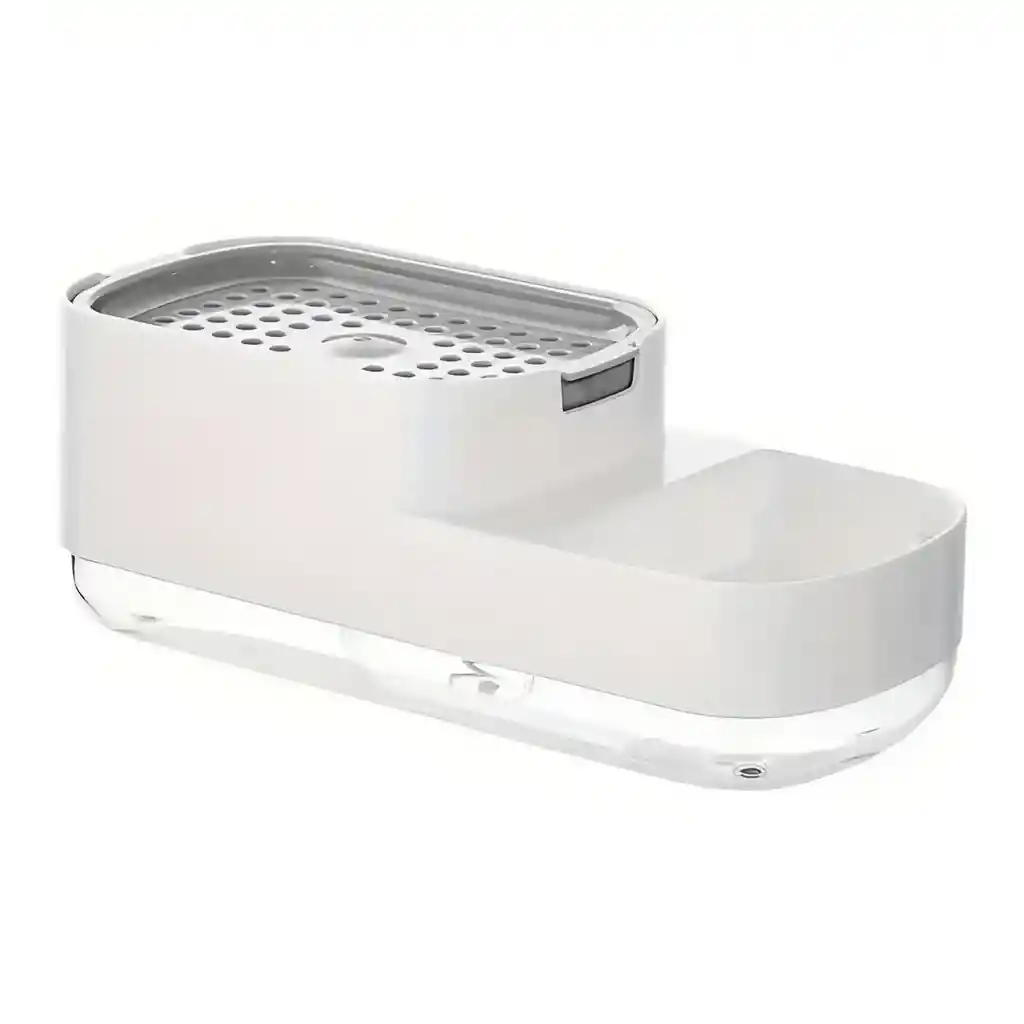 Este práctico dispensador de jabón 2 en 1 con organizador de esponja es la solución definitiva para mantener tu cocina impecable, combinando un diseño moderno y minimalista con una funcionalidad excepcional. Fabricado en plástico ABS de alta calidad, cuenta con un sistema de bombeo por presión que dosifica la cantidad exacta de detergente directamente sobre la esponja, evitando el desperdicio y manteniendo el área del fregadero libre de derrames. Su estructura inteligente incluye un compartimento adicional ventilado ideal para almacenar estropajos metálicos o paños, mientras que su base transparente te permite monitorear el nivel de jabón en todo momento. Es un accesorio compacto, duradero y fácil de desarmar para una limpieza profunda, diseñado para transformar la rutina del lavado de platos en una experiencia más rápida, ordenada y eficiente. FICHA TÉCNICA Producto: Dispensador de Jabón y Organizador de Lavaplatos Modelo: Doble compartimento (Jabón + Estropajo) Material: Plástico ABS resistente y base de policarbonato transparente Largo: 23 cm Ancho: 10 cm Alto: 8 cm Capacidad: Aproximadamente 380 ml Sistema de operación: Bomba de presión manual por contacto Dimensiones del empaque: 23.5 x 10.5 x 8.5 cm Color: Blanco con gris y base transparente Características adicionales: Base antideslizante, desmontable para lavado, rejilla de drenaje rápido Uso: Cocina, hogar, restaurantes ** _Para defectos de fábrica o retractos: \_Por favor revise el producto apenas lo reciba y antes de usarlo. No aplican ley de retracto o defectos de fábrica luego de usar el producto. Se manejan máximo 5 días para reportar defectos de fábrica (por ejemplo, producto funciona mal, piezas faltantes, rotas, etc). Para hacer efectiva la devolución el producto debe devolverse con el empaque original, el cual debe estar en buen estado, incluir todos los documentos y las partes completas y sin daños.