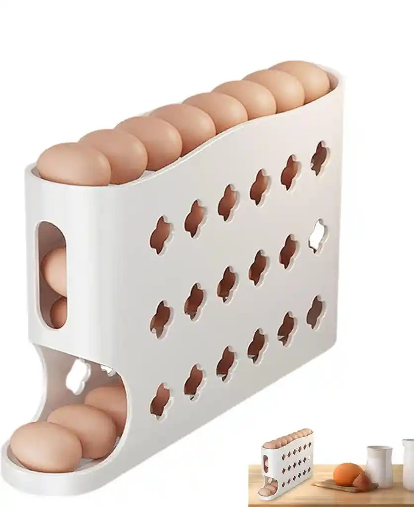 Dispensador de huevos rodante, soporte para huevos, almacenamiento automático de huevos, mantiene tus huevos organizados para optimizar el espacio de tu refrigerador incluso en entornos estrechos.
