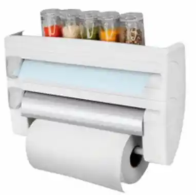 Este dispensador multiusos no solo mantiene tu cocina organizada, sino que también facilita el acceso rápido a los rollos necesarios para la preparación de alimentos, ahorrándote tiempo y esfuerzo. Este Dispensador de Rollo para Cocina 4 en 1 es un práctico accesorio que facilita el acceso y el uso de diversos tipos de rollos en la cocina. Diseñado para montarse en la pared, este dispensador organiza y distribuye papel aluminio, plástico vinipel, y toallas de papel, manteniendo tu cocina ordenada y eficiente. Con un estante organizador en la parte superior, puedes almacenar especias o utensilios pequeños. El cortador de papel oculto garantiza un corte limpio y seguro de los rollos sin desperdicio, y la varilla de soporte de toalla de papel extraíble permite un cambio fácil y rápido. Fabricado con material plástico resistente, este dispensador multiusos es duradero y fácil de limpiar, convirtiéndolo en un ayudante indispensable en cualquier cocina moderna. Su diseño compacto y funcional ahorra espacio, manteniendo todos tus elementos esenciales al alcance de la mano. CARACTERÍSTICAS -Montaje en pared -Organiza cuatro tipos de rollos -Estante superior -Cortador de papel oculto -Porta rollos de papel extraíble -Material plástico resistente -Diseño compacto -Fácil instalación -Ahorra espacio -Limpieza sencilla