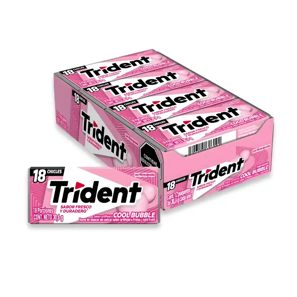 Display Chicles Trident Cool Bubble x 12 unidades 367,2 g | Sabor burbuja sin azúcar El Display Chicles Trident Cool Bubble x 12 unidades ofrece la combinación perfecta entre el clásico sabor a chicle burbuja y una sensación refrescante, en la calidad reconocida de Trident. Su fórmula sin azúcar permite disfrutar de un sabor dulce y divertido mientras cuidas tu sonrisa. Este formato display es ideal para puntos de venta, compartir en la oficina, eventos o para quienes buscan un stock rendidor de su chicle favorito. Atributos destacados Display x 12 unidades, formato rendidor. Peso neto total: 367,2 g. Sabor Cool Bubble, dulce y refrescante. Fórmula sin azúcar, cuida tus dientes. Frescura prolongada, ideal para después de comer. Presentación individual, práctica e higiénica. Marca Trident, líder en chicles sin azúcar. Experiencia de consumo Desde el primer momento se percibe el sabor clásico a chicle burbuja, acompañado de una nota refrescante que se mantiene por más tiempo. Su textura suave y masticable hace que cada unidad sea cómoda y agradable de disfrutar. Recomendado para Personas que buscan chicles sin azúcar con sabor divertido, ideales para compartir, ofrecer en negocios, llevar en la lonchera o mantener siempre a mano. Modo de uso Mascar un chicle cuando desees refrescar el aliento o disfrutar de su sabor burbuja. Desechar de manera responsable después de su uso. Conservación Mantener en un lugar fresco y seco, protegido del calor y la humedad. Por qué te encantará Porque combina sabor burbuja, frescura y formato display rendidor, ofreciendo chicles prácticos, deliciosos y perfectos para cualquier ocasión.