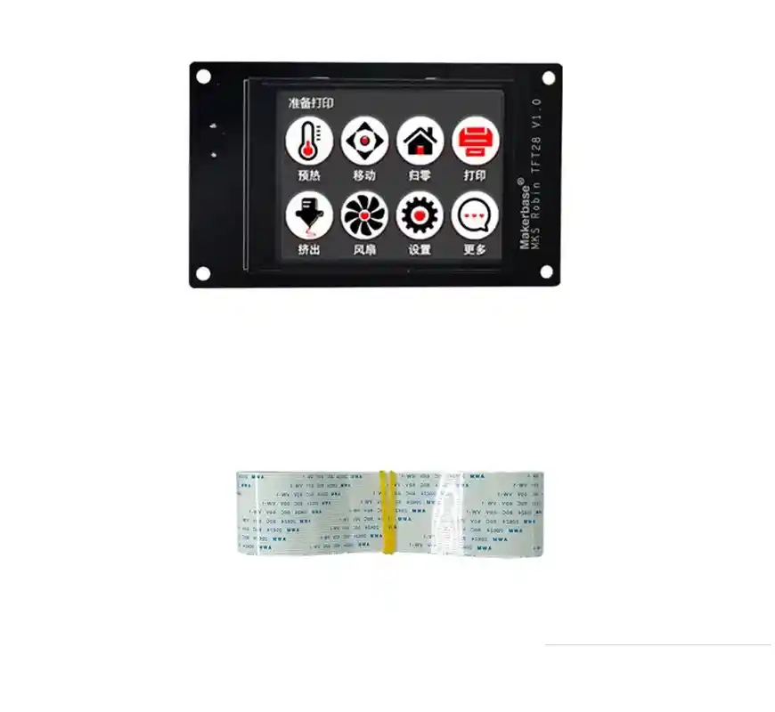 Tamaño: 2.8 Pulgadas MKS-TFT 28 es un producto tactil en color independiente desarrollado para la base del fabricante, que es adecuado para impresoras 3D de codigo abierto. Se puede usar en una serie de placas base como MKS Base, MKS Gen, MKS Sbase, etc. A diferencia del MKS-TFT32,. Caracteristicas 1. Soporte de 5 idiomas de conmutacion en linea. 2. Pantalla tactil a color de 2.8 pulgadas / 3.2 pulgadas, compatible con disco U y tarjeta SD 3. Reserve el puerto Wifi, aumente el modulo Wifi puede soportar la funcion Wifi; 4. Proporcione tres temas, dos estilos, para que los usuarios puedan elegir mas. 5. El logotipo de arranque y todos los botones pueden ser de diseño propio. 6. Se puede personalizar un maximo de 13 funciones directivas. 7. Actualizacion del firmware de configuracion mediante tarjeta SD, operacion simple y conveniente. 8. El programa de control principal no necesita ser modificado, la velocidad en baudios es consistente, plug and play, admite Marlin, Repetier, firmware Smoothieware; 9. Se puede utilizar en las placas base de la serie MKS introducidas por Maker base. 10. Admite multiples funciones, como la funcion de recuperacion de puntos de interrupcion, la funcion de deteccion de filamentos, guarda los datos de gcode con la funcion de apagado. 11. Puede admitir todas las impresiones de codigo G. LA COMPRA INCLUYE: 1X DISPLAY TFT28 MKS ROBIN NANO 1X CABLE ADAPTADOR