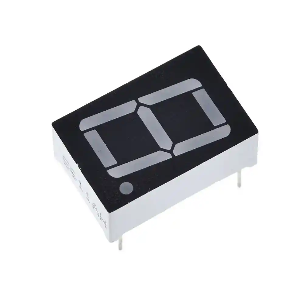 Display 7 segmentos 1 dígito con punto decimal Catodo común Tamaño del dígito: 14.2 mm Color del segmento encendido: rojo Color del segmento apagado: blanco Color de la superficie frontal: negro Voltaje en directo (Vf) típico: 2.2 V Voltaje inverso máx: 5 V Corriente por segmento máx: 20 mA Corriente de operación por segmento recomendada: 12 mA Dimensión: 9.5 x 6.3 x 4 mm Peso: 2.1 gr. LA COMPRA INCLUYE: 1x DISPLAY 7 SEGMENTOS CATODO COMUN ROJO