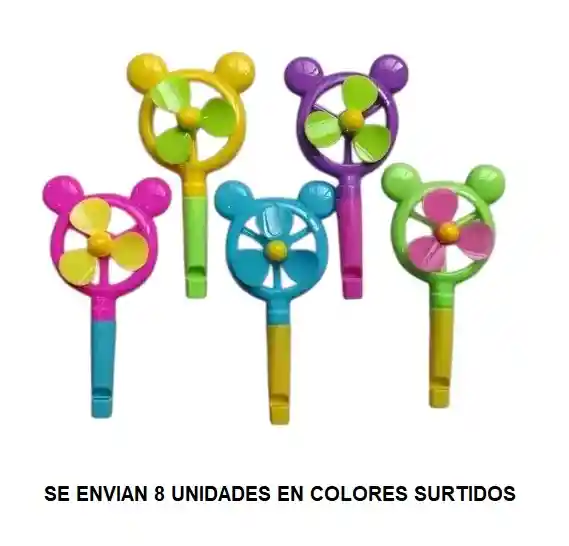 PITO/ SILBATO DISEÑO VENTILADOR MICKEY PARA PIÑATA COLORES SURTIDOS CADA UNO MIDE 12.5X6.5 CM SE ENVÍAN 8 UNIDADES