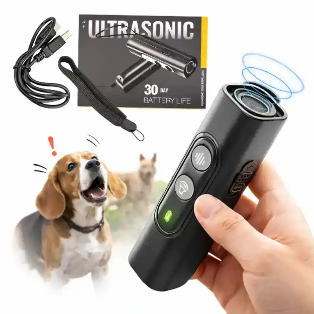 Es un dispositivo ultrasónico portátil anti ladridos diseñado para ayudar a corregir el ladrido excesivo de perros de forma segura y no agresiva. Emite un sonido ultrasónico (inaudible para humanos) que capta la atención del perro y ayuda a interrumpir el ladrido, promoviendo un comportamiento más tranquilo. ¿Qué incluye la compra? • 1 dispositivo ultrasónico anti ladridos • 1 cable de carga USB tipo C • 1 correa de mano • 1 caja de presentación Características: • Modo ultrasónico para disuadir el ladrido • Modo sonido (beep) audible • 2 niveles de frecuencia • Indicador LED de funcionamiento • Batería recargable con hasta 30 días de duración • Diseño portátil y ligero • Seguro y libre de descargas eléctricas Modo de uso: • Encienda el dispositivo presionando el botón de encendido. • Cuando el perro ladre, apunte el dispositivo hacia él. • Presione el botón del modo deseado (ultrasonido o beep). • Use de manera constante para mejores resultados. • Recargue el dispositivo cuando el indicador lo señale. Detalles: • Ideal para uso en interiores y exteriores • No causa dolor ni estrés físico al animal • Apto para perros de diferentes tamaños • Fácil de transportar gracias a su correa de mano • Funcionamiento silencioso para humanos Dimensiones: Largo del dispositivo: 10.5 cm Alto total: 15 cm Ancho: 2.5 cm Largo del cable USB: 50 cm Peso: 100 g Colores: Negro Talla: Talla única Materiales: • Plástico ABS resistente • Componentes electrónicos de alta durabilidad Advertencias: • No usar directamente sobre el oído del animal • No utilizar en cachorros muy pequeños • No es un juguete, mantener fuera del alcance de niños • Los resultados pueden variar según el temperamento del perro Garantía: Garantía por defectos de fabricación No cubre daños por mal uso o manipulación indebida Garantía de fábrica: 30 días