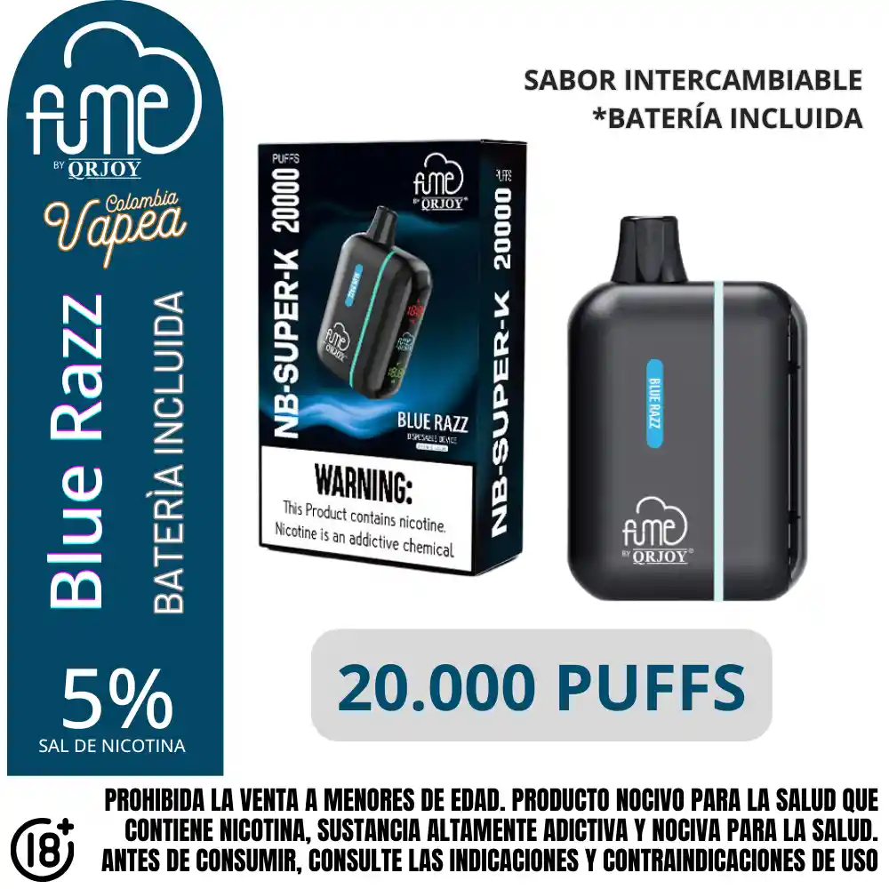 Dispositivo Pod Fume Blue Razz 20000 Puffs 5%