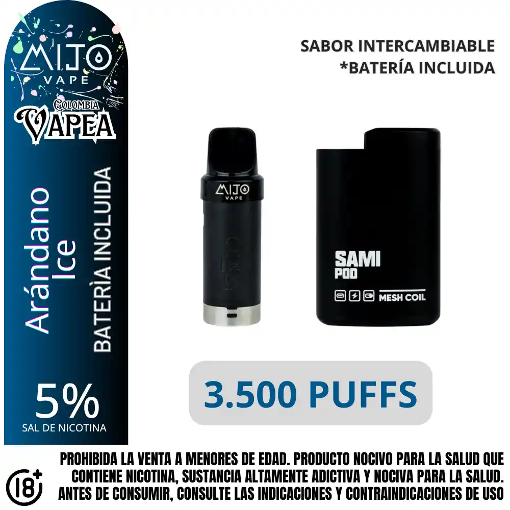 Dispositivo Pod Mijo Arandano Ice 3500 Puffs 5%