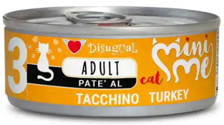 * La lata húmeda Disugual Minime 3 Pavo está hecha con pavo como primer ingrediente. * Su textura tipo paté es ideal para gatos exigentes. * Aporta hidratación y favorece el bienestar general. * Elaborada con ingredientes de calidad para cuidar la salud de tu gato. * Deliciosa y nutritiva, perfecta para una dieta balanceada.