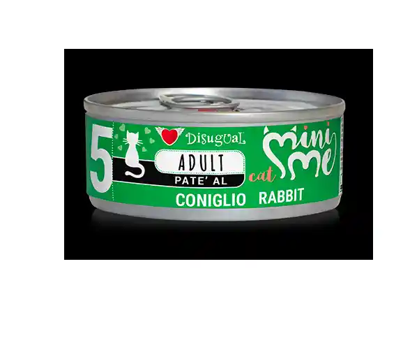 La lata húmeda de Disugual MINIME 5 - CONEJO está hecha con conejo como primer ingrediente. Son latas deliciosas, ideales para cuidar la salud de nuestros gatos dándoles lo mejor. Tienen textura paté, gracias a su alto contenido en conejo son ideales para nuestros gatos, demás aportan hidratación para ellos.