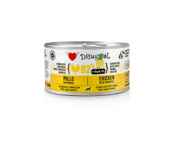 Disugual +Fruit es el alimento húmedo completo para tu perro adulto, formulado con una única fuente de proteína animal y enriquecido con fruta!. Toda la calidad de nuestro clásico con un toque extra de dulzura. Tu mejor amigo se merece lo mejor: por eso hemos creado un alimento de altísima calidad con mucho pollo y sabrosa fruta.