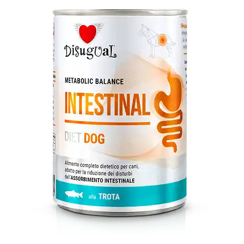 Alimento dietético completo para perros, indicado para la reducción de los trastornos de la ABSORCIÓN INTESTINAL. Características nutricionales esenciales: - Formulado con ingredientes altamente digeribles - Formulado con la menor cantidad de ingredientes posible, para reducir el riesgo de intolerancias - Mayor concentración de electrolitos (Na y K) para restablecer el equilibrio hídrico del cuerpo Disugual INTESTINAL es un alimento equilibrado en cuanto a aporte de vitaminas y minerales, complementado con prebióticos (XOS y MOS) y polifenoles extraídos de Vitis vinifera. La dieta ha sido formulada con proteínas de alta digestibilidad, ya que se someten al proceso de hidrólisis y fibra prebiótica.
