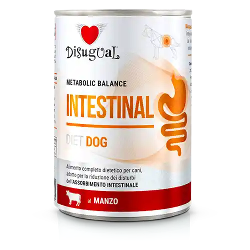 Alimento dietético completo para perros, indicado para la reducción de los trastornos de la ABSORCIÓN INTESTINAL. Características nutricionales esenciales: - Formulado con ingredientes altamente digeribles - Formulado con la menor cantidad de ingredientes posible, para reducir el riesgo de intolerancias - Mayor concentración de electrolitos (Na y K) para restablecer el equilibrio hídrico del cuerpo Disugual INTESTINAL es un alimento equilibrado en cuanto a aporte de vitaminas y minerales, complementado con prebióticos (XOS y MOS) y polifenoles extraídos de Vitis vinifera. La dieta ha sido formulada con proteínas de alta digestibilidad, ya que se someten al proceso de hidrólisis y fibra prebiótica.