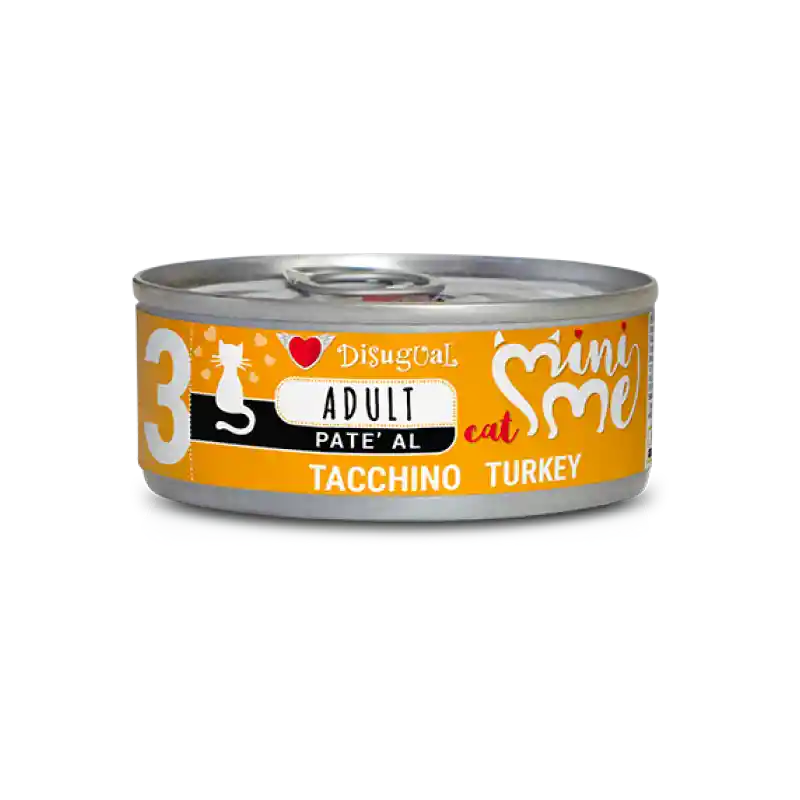 Disugual Mini Me Gato Lata 85gr Pavo es un alimento húmedo gourmet especialmente formulado para gatos adultos. Esta receta premium, elaborada con carne de pavo de alta calidad, proporciona una fuente de proteínas magras que favorece el desarrollo muscular y mantiene a tu gato en su peso ideal. Enriquecido con vitaminas y minerales esenciales, este alimento contribuye al bienestar general de tu felino, apoyando su sistema inmunológico, salud digestiva y vitalidad diaria. Libre de cereales y aditivos artificiales, es una opción nutritiva y deliciosa que satisface los paladares más exigentes. Características y Beneficios: Carne de Pavo: Fuente de proteínas magras, ideal para mantener el peso y masa muscular de tu gato. Fórmula Completa y Balanceada: Enriquecida con vitaminas y minerales esenciales. Sin Cereales: Ideal para gatos con sensibilidad alimentaria o intolerancias. Natural y Sano: Libre de colorantes, conservantes y saborizantes artificiales. Formato Práctico: Lata de 85g, perfecta para servir porciones frescas en cada comida.