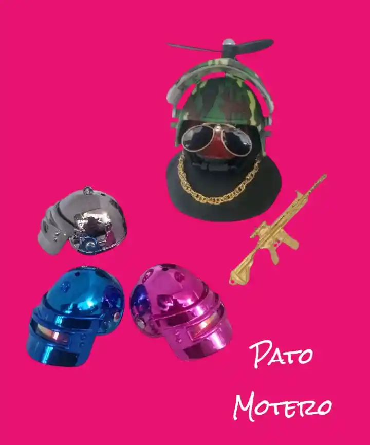Lindo diseño de patito: Añade un toque de color a su espacio de conducción. Ideal para Moto, bicicleta,Carro etc. Con pato rompevientos Inspirados en el clásico diseño rompevientos de una bicicleta, los patitos Negros montan libremente sus bicicletas en el adorno de tu coche, Moto o Bicicleta aportando relajación y placer a tu viaje. El exclusivo diseño de la hélice de libélula permite que los patitos giren libremente sin pilas ni electricidad, lo que aumenta la diversión. Protección del casco: Cada patito Negro está equipado con un simpático casco, seguro y elegante, que lo protege de colisiones accidentales. ENTUSIASMO BRILLANTE: El diseño del modelo con luz permite que el patito emita un cálido resplandor en la oscuridad, añadiendo un ambiente romántico a su espacio de conducción. SÓLIDO Y DURADERO: Hecho de material plástico de alta calidad para garantizar que el producto sea resistente y duradero para un uso a largo plazo. Incluye: 1 Pato en color Negro 1 Casco según la elección 1 Gafas 1 Cadena 1 Rifle Dorado Nota: Está publicado solo 1 Pato con 1 Casco, los cascos que aparecen en la foto es para q tengan referencia de los colores que hay disponibles.