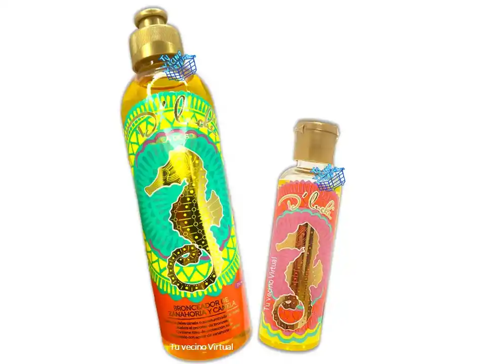 En tu vecino virtual también encontraras : Anyeluz, syam cosmetic, piel de oro, Kaba, class gold, lampiña, Te verde de matcha Benefit, te plus, te latte, te negro, exfoliante, aceite de coco, pomada alfa, colageno hidrolizado,vinipel osmótico, Bioaqua Acne, Mascarillas,tónico, Trendy, la pocion, HGW y muchos mas ————————————————————————————————————————————————— ----------------------------------------------------------------------------------------------------- Mini Aceite Regenerador de Almendras D'Luchi 60 ML ¡Hidratación para un bronceado más duradero! Recupera tu piel reseca a causa del sol, funciona como ultra hidratante para tu piel combatiendo la resequedad después de tomar sol. Además, ayudará a que tu bronceado sea más duradero. Recupera la suavidad y la hidratación de tu piel después de la exposición al sol con el Mini Aceite Regenerador de Almendras D'Luchi. Este aceite ultra hidratante combate la resequedad, mientras ayuda a prolongar tu bronceado, dándole a tu piel un aspecto suave y saludable. Características principales: • Ultra hidratante: Perfecto para restaurar la hidratación perdida después de tomar el sol. • Suaviza la piel: Ayuda a suavizar la piel áspera, dejándola más suave y tersa. • Prolonga el bronceado: Mantiene tu color dorado por más tiempo al mantener la piel hidratada. Beneficios: • Hidrata profundamente la piel reseca. • Suaviza la piel, dándole una textura sedosa. • Ayuda a que tu bronceado se vea radiante y dure más tiempo. Recomendaciones de uso: Aplica sobre la piel después de la exposición al sol. Masajea suavemente hasta que se absorba por completo. Detalles adicionales: • Presentación mini, ideal para llevar en viajes. • Apto para todo tipo de piel. ¡Lleva la hidratación y el bronceado perfecto a todas partes con el Mini Aceite Regenerador de Almendras D'Luchi! •Mezcla todos los días un poco de nuestro Regenerador de Almendras con tu crema de manos, y aplica sobre todo el cuerpo para mantener tu piel hidratada. • Aplica con un cepillo suave nuestro regenerador en zonas resecas como codos, rodillas y pies para hidratarlos, exfoliarlos y devolverles la suavidad. • Si te expusiste al sol utilízalo luego de ducharte para evitar que te salgan estrías y que tu color dure por mucho tiempo más. •Contiene colágeno, vitamina E y ácido hialurónico. - Registro Invima: NSOC87488-18CO ——————————————————————————— BRONCEADOR DE ZANAHORIA Y CANELA D'LUCHI 250 ML Acelera el proceso de bronceado y te lleva al tono deseado, gracias a su contenido de betacaroteno podrás lograr un bronceado más intenso y duradero. Se recomienda aplicar el día dos de la exposición al sol. Modo de uso: Siempre que vayas a usar nuestro bronceador debes aplicar nuestro Bloqueador Solar con factor de protección (50+), Luego aplica el bronceador. -Repite el proceso de aplicación del Bloqueador Solar y el bronceador, cada 15 minutos para evitar insolarte, y así obtener un bronceado perfecto. -Te recomendamos que el tiempo de exposición al sol sea de 20 a 30 minutos aproximadamente por cada lado. -El día uno de exposición al sol inicia aplicando el de coco y al día siguiente el de zanahoria y canela. En caso de tener nuestros dos bronceadores alternarlos. Contiene: 250 mL Invima :NSOC62247-14CO