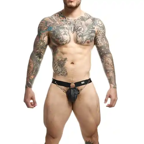 El suspensorio con cadena esta fabricado en resistente piel sintetica en un elegante color negro y otros nuevos colores.