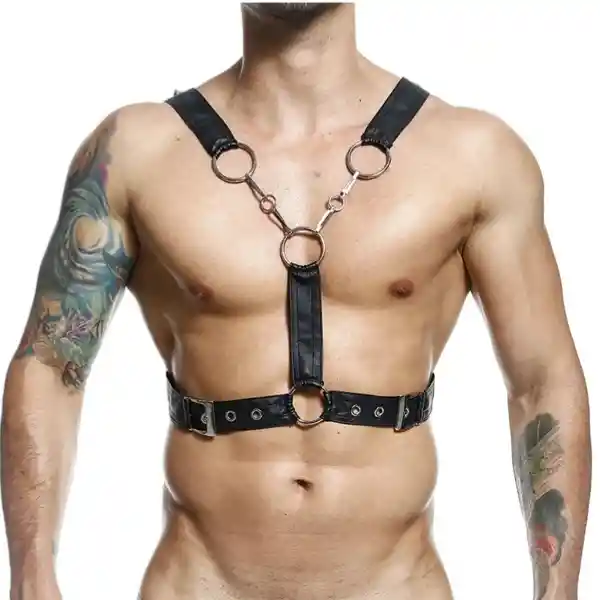Dngeon Cross Chain Harness By Mob Negro Este arnés masculino ajustable está diseñado para resaltar el torso y aportar un estilo audaz y moderno. Su estructura con correas firmes y argollas metálicas crea un look atractivo y dominante, ideal para quienes buscan destacar su figura con seguridad y actitud. Fabricado con material resistente y cómodo, ofrece un ajuste firme sin sacrificar confort. Perfecto para usar como accesorio íntimo, lencería masculina o complemento en juegos de rol y momentos especiales. Características: Color:Negro Talla única Elástico y ajustable Anillos metálicos Diseño masculino y provocador Material cómodo y duradero Ideal para lencería, rol o uso decorativo íntimo Un accesorio pensado para expresar confianza, sensualidad y estilo en cada detalle. Cuidados: Lavar a mano o en el proceso de prendas delicadas. Confidencialidad: Tus pedidos se envían en una caja o sobre totalmente sellado opaco sin ningún tipo de marcas externas. Para nosotros es muy importante tu privacidad Despacho a todo Colombia