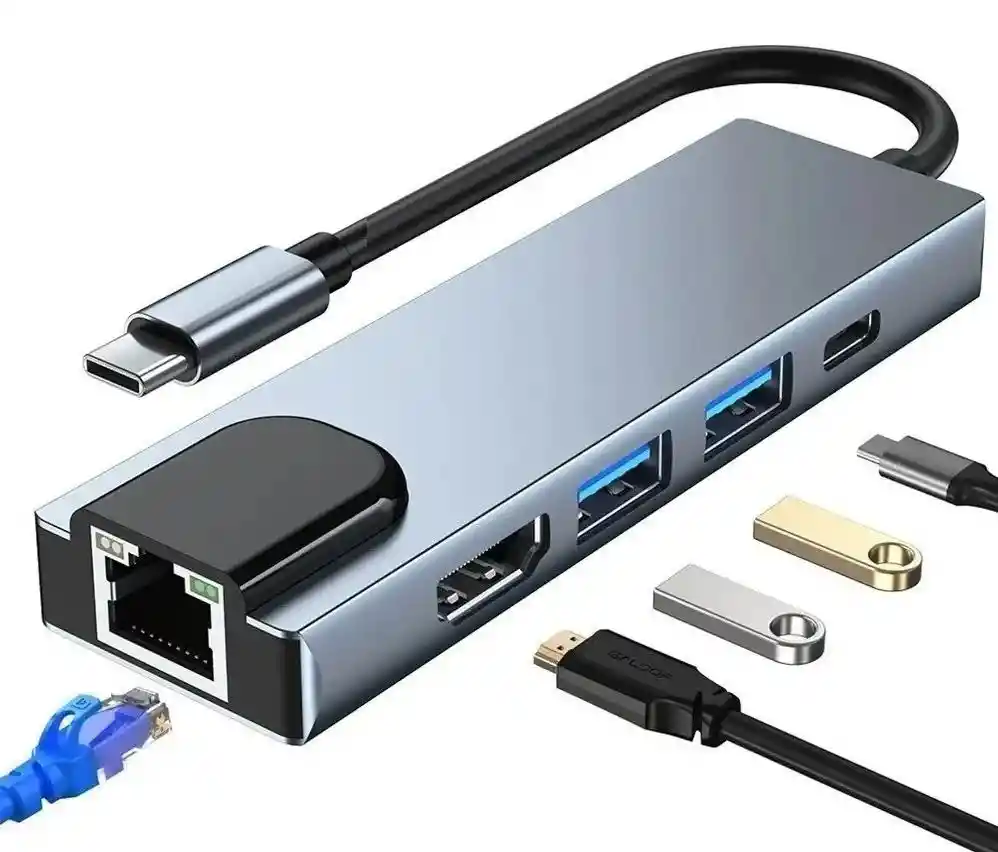 Transforma un solo puerto USB-C en una estación de trabajo completa. Este Dock Station 5 en 1 es compacto, elegante y potente, diseñado para maximizar tu productividad ya sea en la oficina, en casa o en tus viajes.