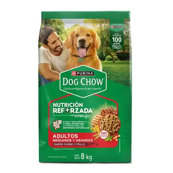 Nutrición Reforzada para Grandes Compañeros Tu perro es parte de la familia, y se merece una alimentación que esté a la altura de su lealtad. Dog Chow Adultos Medianos y Grandes llega con su fórmula avanzada ExtraLife, una mezcla especial de antioxidantes, vitaminas y minerales que ayuda a maximizar la calidad de vida de tu mejor amigo.