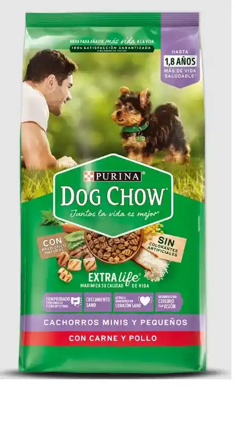 Nutrición específicamente diseñada para tu cachorro mini y pequeño que ayuda a mejorar su calidad de vida desde adentro hacia afuera de forma visible. DOG CHOW SALUD VISIBLE CACHORROS MINIS Y PEQUEÑOS ® ahora viene con EXTRALIFE. Una mezcla especial con antioxidantes que maximiza su calidad de vida día tras día. Porque una mejor vida para él es una mejor vida para todos Juntos la vida es mejor. Desarrollo del cerebro y la visión DHA de fuente natural Crecimiento sano Músculos y huesos fuertes Promueven un pelaje brillante Omega 6 y 3 Equilibra la flora intestinal prebiótico natural
