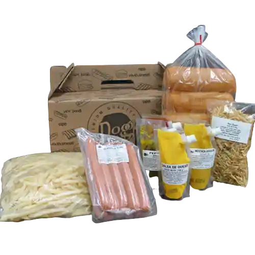 Panes Big Dogger 10 Unidades + Salchichas Big Dogger 10 Unidades + Papas a la Francesa 2 Kg + Salsa de Tomate 230 g + Salsa de Queso Fundido 230 g + Mostaza 230 g + Salsa de Pepinillo 230 g + Ripio de Papa 200 g