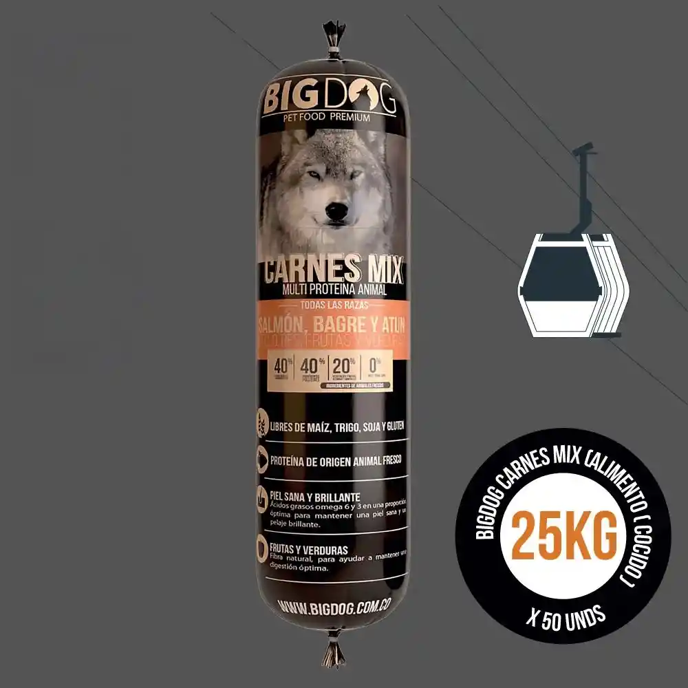 OMIDA NATURAL PARA PERROS CARNES MIX COCIDA AL VAPOR X 10 UNIDADES DE 500 GRAMOS ¡LA MEJOR COMIDA NATURAL PARA PERROS CON VITAMINAS Y MINERALES BIG DOG CARNES MIX (MULTPROTEINA SALMÓN, ATÚN, POLLO, RES Y CERDO! X 10 UNDS (5 KILOS) La comida natural para perros Bigdog es un alimento húmedo cocido al vapor, tiene todo el potencial que su perro necesita con un toque tradicional. Alimento muy economico con materias primas de muy buena calidad. La comida natural para perros Bigdog Cerdo Mix esta fórmula con Cerdo, Salmón, frutas y verduras que brindan energía y es altamente digerible para perros activos. Nuestra dieta esta hecha con proteinas de origen animal, con frutas, verduras y vitaminas y minerales que satisfacen sus necesidades nutriconales. Hecho con ingredientes elegidos de manera selecta que asegura un producto de calidad y delicioso sabor que amará tu consentido y no dejará de comerlo. Libre Maíz, Trigo, Soya y gluten. Ayuda a la piel sensible. Con omega 3 y 6. Ayuda a tener un pelaje brillante. Ayuda a la piel sensible. INGREDIENTES DE LA COMIDA NATURAL PARA PERROS BIGDOG CARNES MIX Salmón, atún y/o bagre, Carne de Res y/o Pollo, Hígado de Pollo y/o Res , Papa, , Manzana y/o Banano, Zanahoria, Espinaca, Vísceras de Res y/o Cerdo y/o Pollo, Proteína Texturizada de Soya, Aceite Vegetal y/o Grasa Animal, Zeolita, Premezcla Mineral y Vitamínica: Vitamina A, D3, E, B1,B2, B6, B12, Niacina, Biotina, Ácido Fólico, Pantetonato de Calcio, Sulfato de Cobre, Sulfato Ferroso, Sulfato de Magnesio, Sulfato de Manganeso, Iodato de Calcio, Sulfato de Zinc, Selenito de Sodio, Extracto de Yuca y/o Extracto de Lino Celulosa, Cloruro de Sodio, Acido Citrico, Acido Ascórbico Y Tocoferol. Tabla Nutricional BigdogProteína Cruda (min.)22%Grasa mínimo:0.80%Fibra Cruda (Max):2.50%Cenizas (Max):2.60%Humedad (Max)53% Modo de empleo de la comida natural para perros Bigdog Bigdog es fácil de utilizar, escoga la cantidad a dar a su mascota, corte la cantidad a dar, retire el empaque y descongele la comida, sirva en el plato de su mascota y vea como disfruta de su rica comida. Recomendaciones Nuestra comida natural para perros son productos congelados que deben mantener unas condiciones específicas para asegurar y asegurar el buen estado del mismo. Por ello, después de recibido el producto seguir estos aspectos: Los productos deben estar congelados a una temperatura de 15°, por ello, se debe mantener la cadena de frío. No guarde los alimentos al sol ni en zonas húmedas para evitar el mal estado o la alteración de la composición de la comida. Consumir en el menor tiempo posible: Recuerda que nuestros productos son alimentos perecederos, trata de consumir la comida en el menor tiempo después de haber abierto el empaque para evitar el mal estado, la alteración de la composición de la comida, bacterias o parásitos. Modo de empleo de la comida natural para perros Bigdog Bigdog es fácil de utilizar, escoga la cantidad a dar a su mascota, corte la cantidad a dar, retire el empaque y descongele la comida, sirva en el plato de su mascota y vea como disfruta de su rica comida. Recomendaciones Nuestra comida natural para perros son productos congelados que deben mantener unas condiciones específicas para asegurar y asegurar el buen estado del mismo. Por ello, después de recibido el producto seguir estos aspectos: Los productos deben estar congelados a una temperatura de 15°, por ello, se debe mantener la cadena de frío. No guarde los alimentos al sol ni en zonas húmedas para evitar el mal estado o la alteración de la composición de la comida. Consumir en el menor tiempo posible: Recuerda que nuestros productos son alimentos perecederos, trata de consumir la comida en el menor tiempo después de haber abierto el empaque para evitar el mal estado, la alteración de la composición de la comida, bacterias o parásitos. Fecha de vencimiento: 6 meses bajo congelación Garantia: 7 días habíles por olores o empaque defectuoso. Tamaño: 500 gramos Cantidad: 50 unidades ( 25 kilos)
