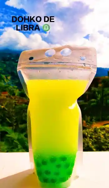 Cóctel a base de vodka sabor Limonada de Coco, con perlas explosivas comestibles sabor Mango Biche.