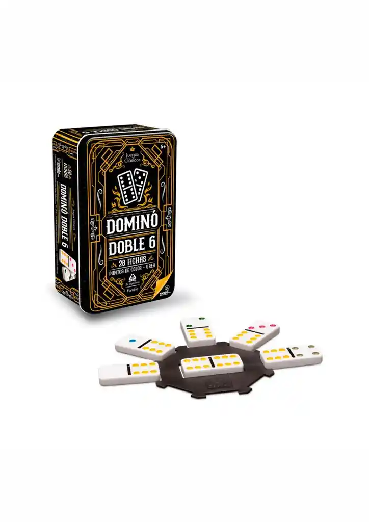 Diviértete en familia y con amigos con este espectacular juego de mesa Domino Doble 6 Lata Se el primer jugador en colocar todas las fichas de juego o quedar con el menor puntaje en las fichas de su mano. Ayudan al desarrollo de sus capacidades motoras, mentales y sensoriales. Desarrollan la concentración, la memoria, la observación y la imaginación Muestran cómo resolver problemas, elaborar estrategias y tomar decisiones. Contenido del producto : *28 Fichas *Pza. de Inicio *Instrucciones *Empaque de lata Edad minima del jugador : 7 + Cantidad de jugadores : 3 +