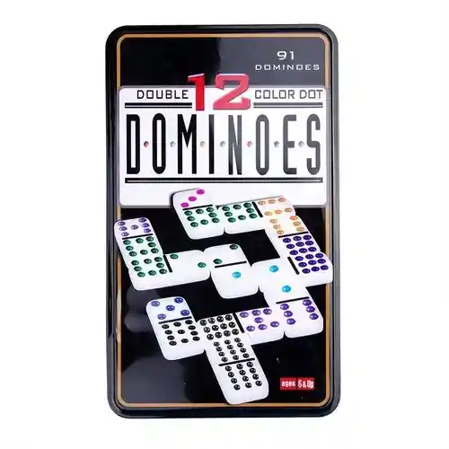 DOMINO DOBLE 12 CON 91 FICHAS DE ALTA CALIDAD ESTUCHE METÁLICO MEDIDAS FICHAS: 5CM x 2.5CM x 1 cm