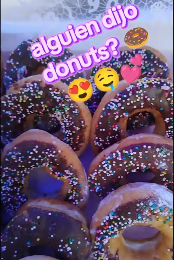 Esponjosas donuts con cubierta de chocolate negro y chispas de colores.
