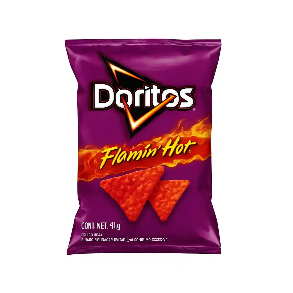 Doritos Flamin Hot x41g. Los totopos más picantes y ardientes con el sabor explosivo que los hace únicos e irresistibles. ¡Para los amantes del picante! 🌶️🔥