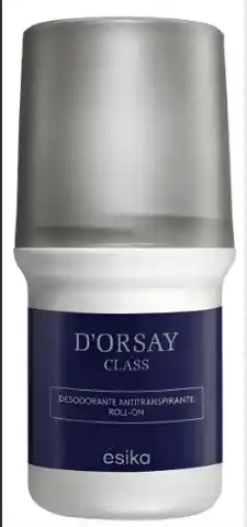 Unidades por pack: 1. Fragancia: Dorsay Class. Formato Roll-on para aplicación precisa. Capacidad de 50ml para uso prolongado. Fórmula antitranspirante efectiva. Dermatológicamente testeado para seguridad. Hipoalergénico apto para piel sensible. Libre de alcohol para suavidad en la piel.