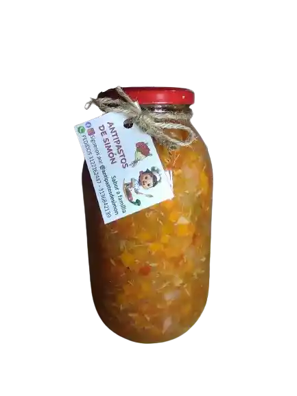 1000 gramos de delicioso antipasto con atún, verdura fresca, casero, orgánico, natural y tradicional, preparado en su jugo, conservando sus nutrientes, mezcla que potencia el sabor, embazado en frasco de vidrio. * Ingredientes: Atún, cebolla, pimentón, zanahoria y alcaparras.